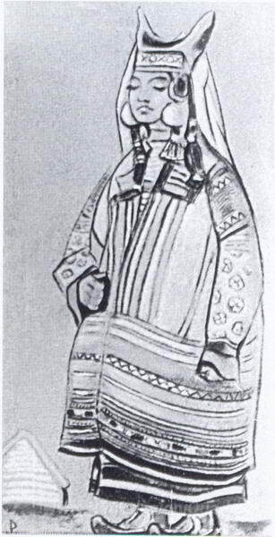 Ti offriamo una riproduzione artigianale su tela dell'opera famosa 'Ragazza' di Nicholas Roerich, dal Museo delle Riproduzioni.