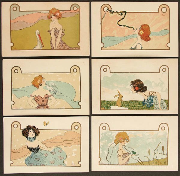 Ti offriamo una riproduzione artigianale su tela dell'opera famosa 'Ragazze con animali' di Raphael Kirchner, dal Museo delle Riproduzioni.
