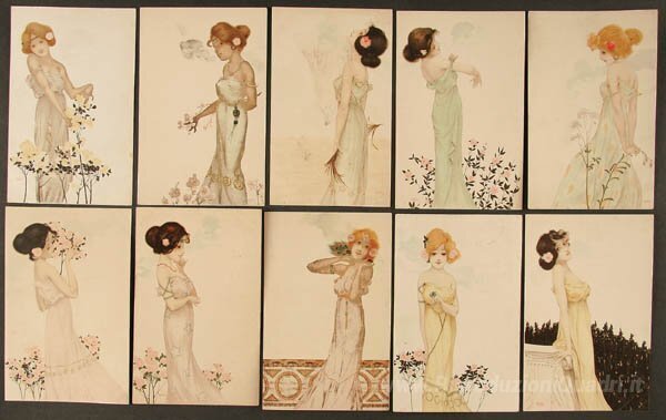 Scopri l'incanto dei dipinti a olio italiani con l'opera Ragazze con fiori ai piedi del celebre artista Raphael Kirchner. Questa straordinaria creazione racchiude l'eleganza della tradizione artistica italiana, fondendo un'estetica raffinata a una tecnica impeccabile. Kirchner, noto per la sua capacità di catturare la bellezza femminile, riesce a trasmettere emozioni e atmosfere che evocano un legame profondo con la natura e la cultura del nostro Paese.