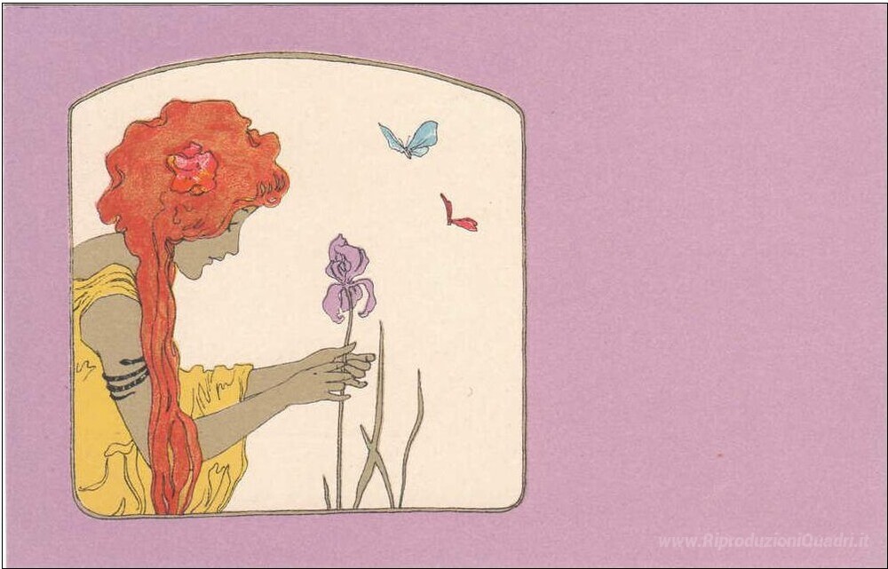 Benvenuti nel nostro angolo dedicato ai capolavori dell'arte italiana, dove la tradizione pittorica si fonde con l'innovazione, offrendo un'esperienza visiva senza pari. Tra i lavori più affascinanti vi è Ragazze con viola circonda, un'opera di Raphael Kirchner che incarna la grazia e la sofisticatezza del periodo artistico a cui appartiene. Kirchner, noto per il suo stile evocativo, utilizza vivaci palette cromatiche e dettagli delicati, per trasmettere emozioni profonde legate alla bellezza femminile e alla natura circostante.