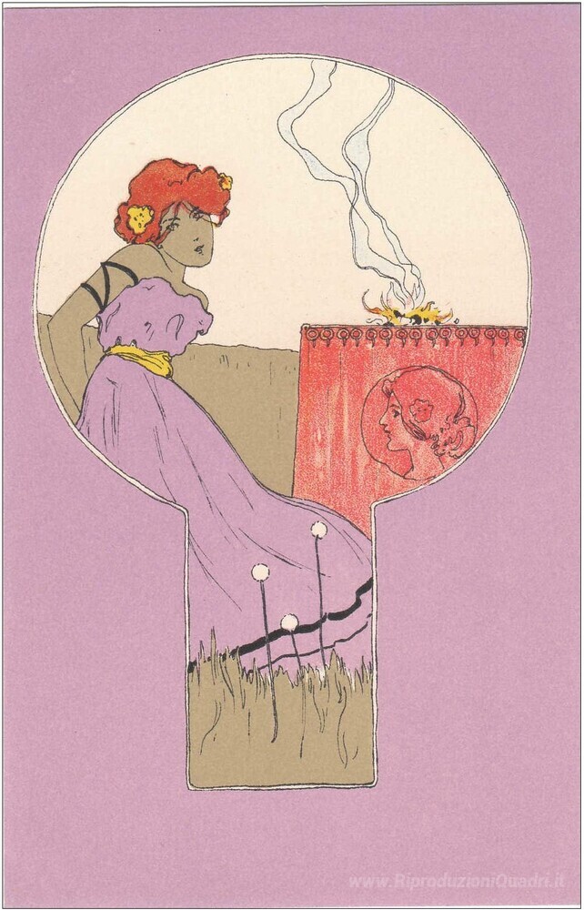 Grazie alle sue tecniche sofisticate e all'uso sapiente dei colori, Ragazze con viola circonda trasmette una sensazione di armonia e serenità, rendendolo il complemento ideale per il vostro soggiorno o il vostro studio. Ogni dettaglio del dipinto invita lo spettatore a immergersi in un mondo di grazia e contemplazione, trasformando l'ambiente circostante in un rifugio di arte e cultura. Scoprire e portare a casa un'opera di Raphael Kirchner significa arricchire la propria vita con un pezzo di vera storia artistica italiana.