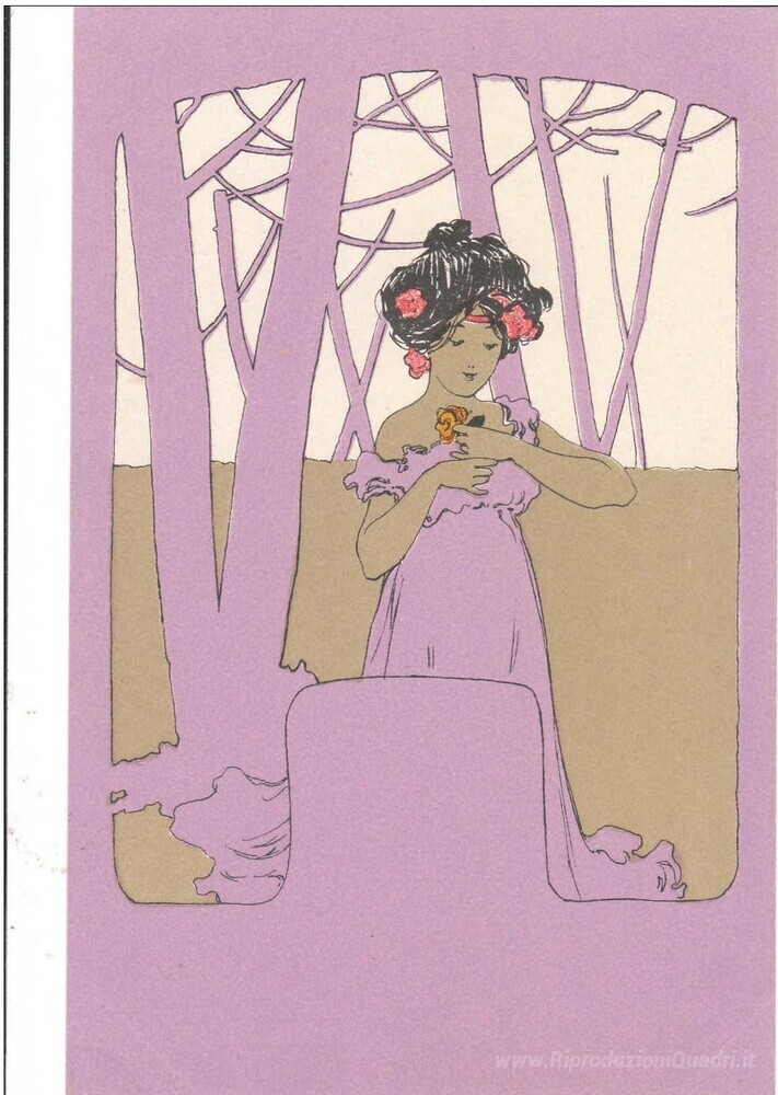 Ti offriamo una riproduzione artigianale su tela dell'opera famosa 'Ragazze con viola circonda' di Raphael Kirchner, dal Museo delle Riproduzioni.
