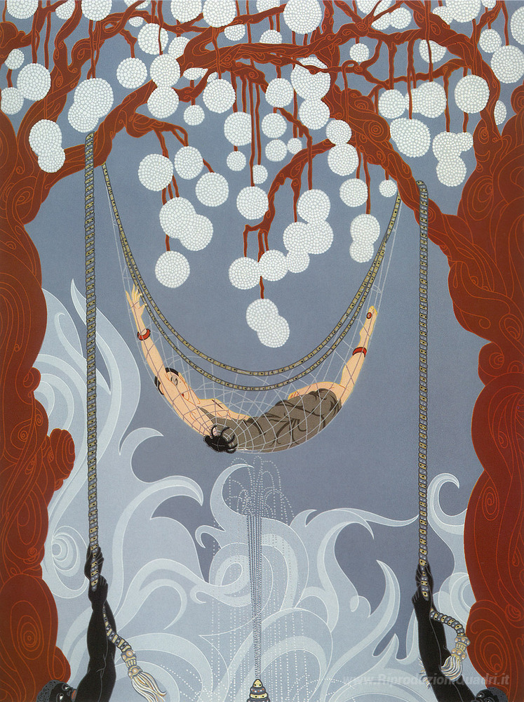 Ti offriamo una riproduzione artigianale su tela dell'opera famosa 'Ragnatela' di Erte, dal Museo delle Riproduzioni.