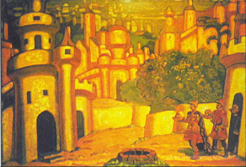 Ti offriamo una riproduzione artigianale su tela dell'opera famosa 'Regali' di Nicholas Roerich, dal Museo delle Riproduzioni.