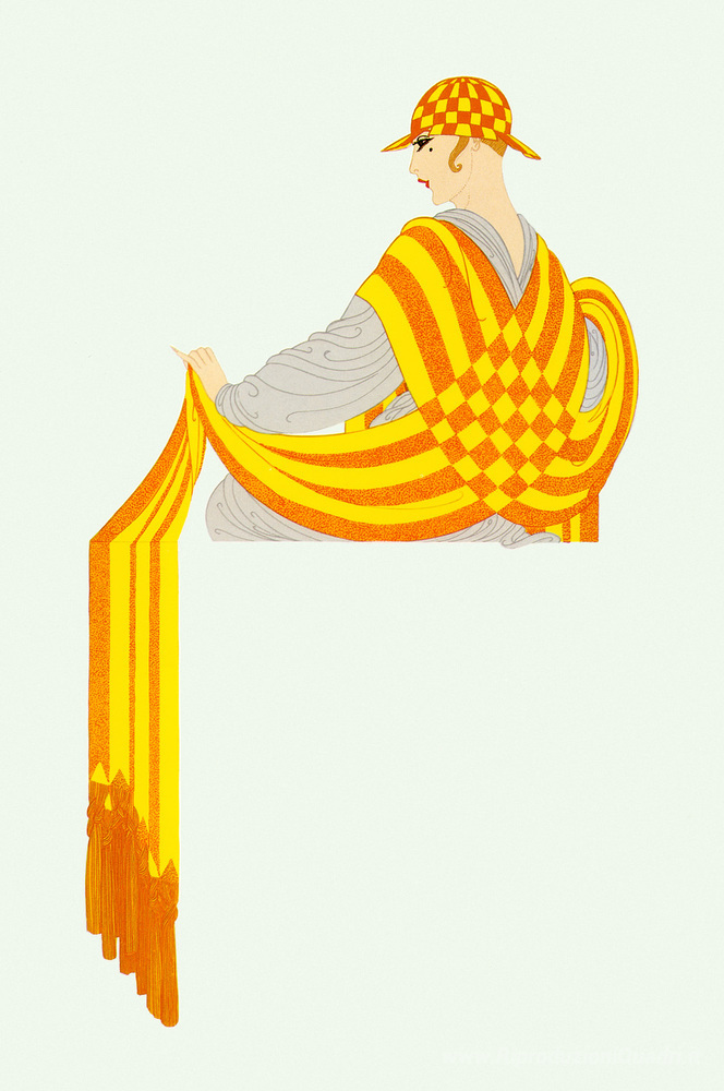Ti offriamo una riproduzione artigianale su tela dell'opera famosa 'Riposo' di Erte, dal Museo delle Riproduzioni.