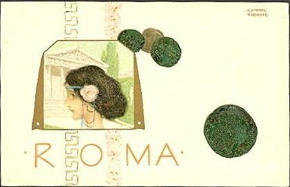 Ti offriamo una riproduzione artigianale su tela dell'opera famosa 'Roma' di Raphael Kirchner, dal Museo delle Riproduzioni.