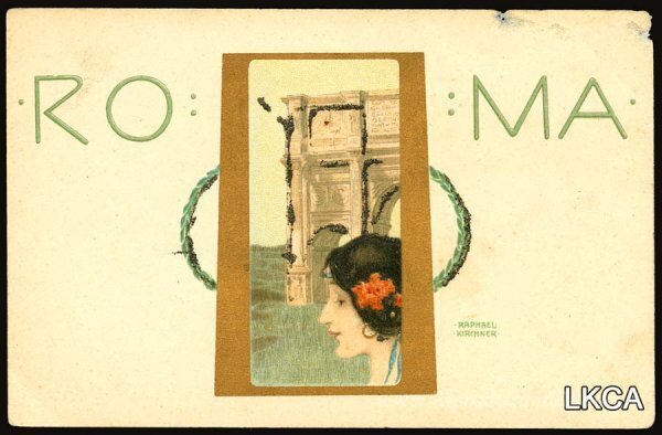 Ti offriamo una riproduzione artigianale su tela dell'opera famosa 'Roma' di Raphael Kirchner, dal Museo delle Riproduzioni.