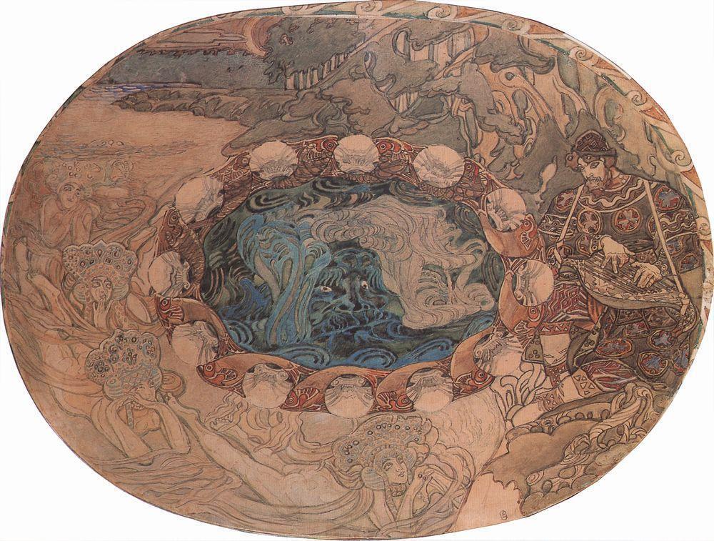 Ti offriamo una riproduzione artigianale su tela dell'opera famosa 'Sadko' di Mikhail Vrubel, dal Museo delle Riproduzioni.