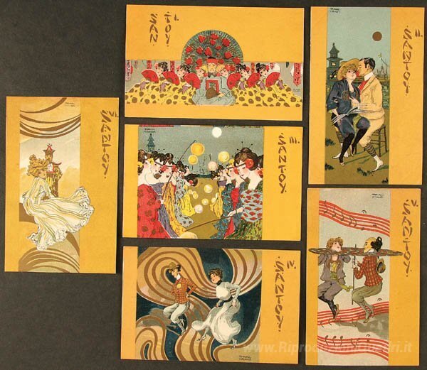 Ti offriamo una riproduzione artigianale su tela dell'opera famosa 'Santoy' di Raphael Kirchner, dal Museo delle Riproduzioni.