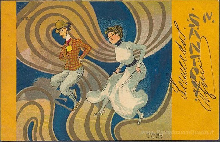 Ti offriamo una riproduzione artigianale su tela dell'opera famosa 'Santoy' di Raphael Kirchner, dal Museo delle Riproduzioni.