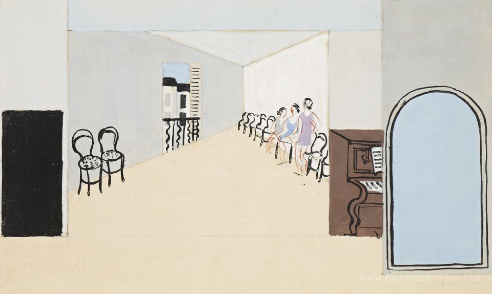 Ti offriamo una riproduzione artigianale su tela dell'opera famosa 'Scenografia per il balletto di Diaghilev, Romeo e Giulietta' di Christopher Wood, dal Museo delle Riproduzioni.