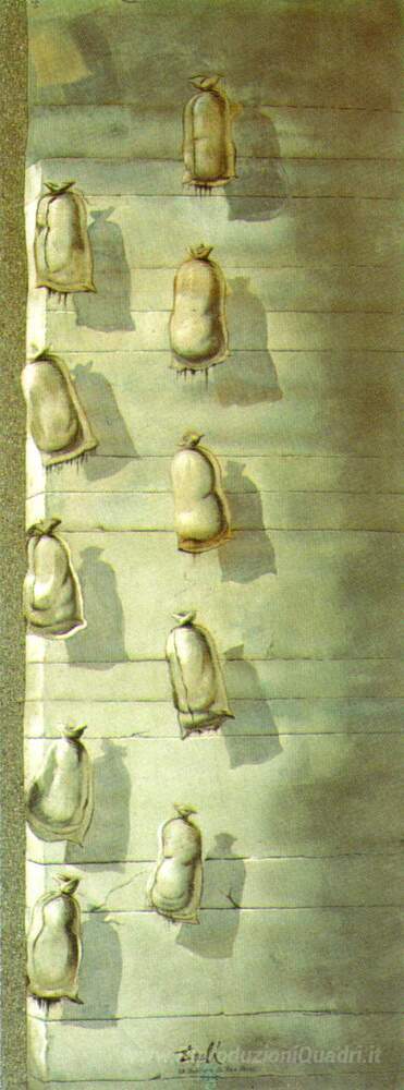 Ti offriamo una riproduzione artigianale su tela dell'opera famosa 'Scenografia per il balletto 'Los Sacos Del Molinero'' di Salvador Dali, dal Museo delle Riproduzioni.