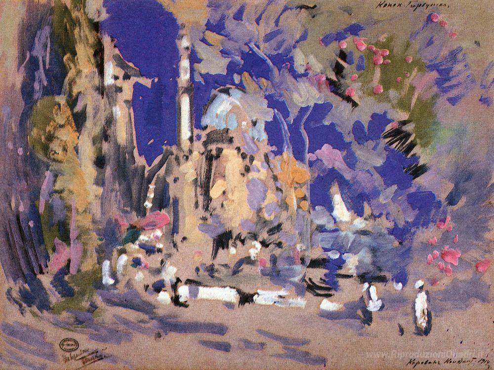 Scopri l'incanto del dipinto Scenografia per il balletto Ts Puni Humpbacked Cavallo, un’autentica opera d'arte firmata dal maestro russo Konstantin Korovin. Noto per la sua straordinaria capacità di catturare la luce e il colore, Korovin ha saputo fondere la tradizione pittorica europea con uno spirito avanguardistico, creando scene che trasportano l'osservatore in un mondo di poesia visiva. I suoi dipinti raccontano storie magnetiche, evocando emozioni e sensazioni che risuonano nel cuore dello spettatore.