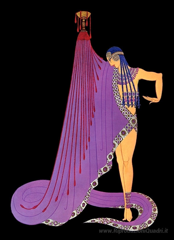 Ti offriamo una riproduzione artigianale su tela dell'opera famosa 'Schiavo di Salome, George Whites Scandali' di Erte, dal Museo delle Riproduzioni.