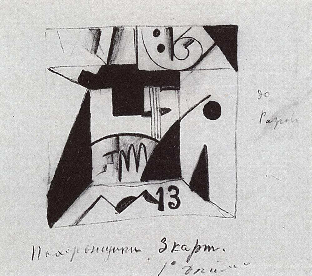 Ti offriamo una riproduzione artigianale su tela dell'opera famosa 'Schizzi Decor per la "vittoria sul Sole" opera' di Kazimir Malevich, dal Museo delle Riproduzioni.