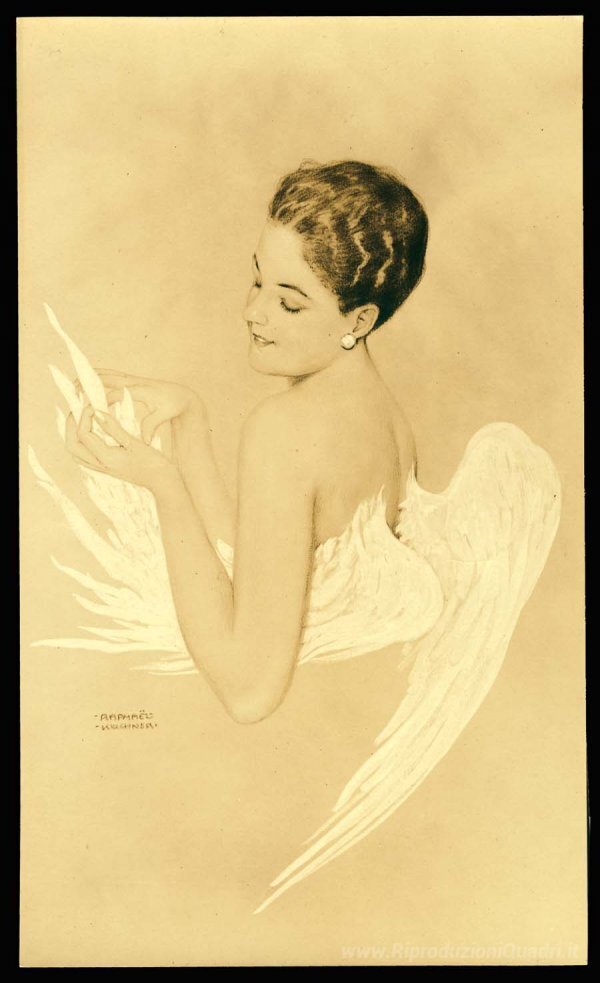 Ti offriamo una riproduzione artigianale su tela dell'opera famosa 'Sconosciuto' di Raphael Kirchner, dal Museo delle Riproduzioni.