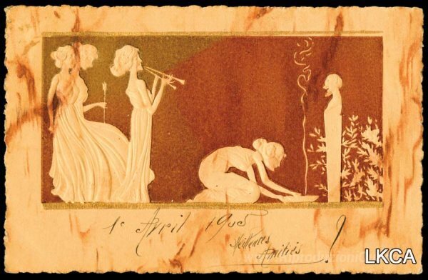 Ti offriamo una riproduzione artigianale su tela dell'opera famosa 'Scultura in avorio' di Raphael Kirchner, dal Museo delle Riproduzioni.