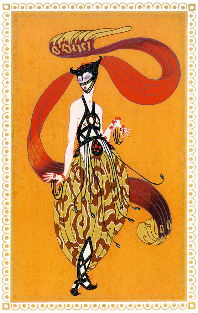 Ti offriamo una riproduzione artigianale su tela dell'opera famosa 'Sheerazade 7' di Erte, dal Museo delle Riproduzioni.