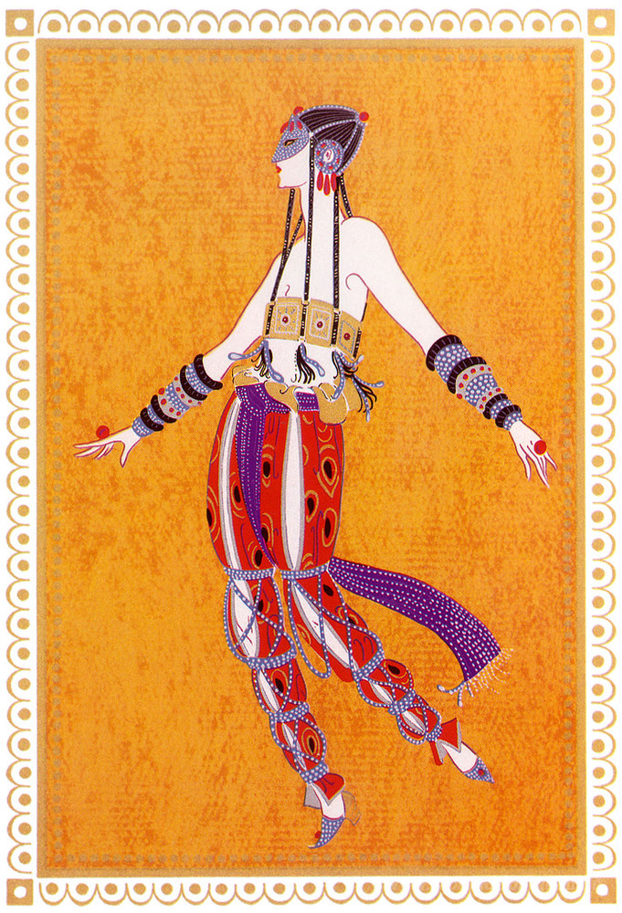 Ti offriamo una riproduzione artigianale su tela dell'opera famosa 'Sheerazade 9' di Erte, dal Museo delle Riproduzioni.