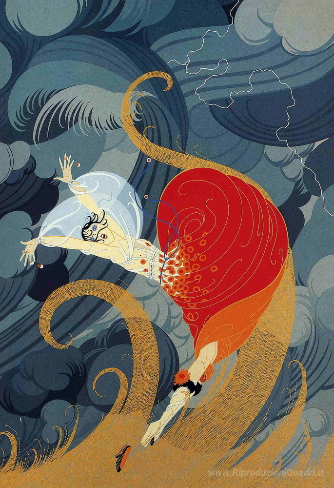Ti offriamo una riproduzione artigianale su tela dell'opera famosa 'Spazzato via' di Erte, dal Museo delle Riproduzioni.
