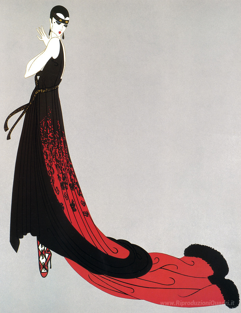 Ti offriamo una riproduzione artigianale su tela dell'opera famosa 'Splendeur' di Erte, dal Museo delle Riproduzioni.