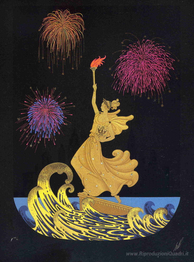Ti offriamo una riproduzione artigianale su tela dell'opera famosa 'Statua della Libertà' di Erte, dal Museo delle Riproduzioni.