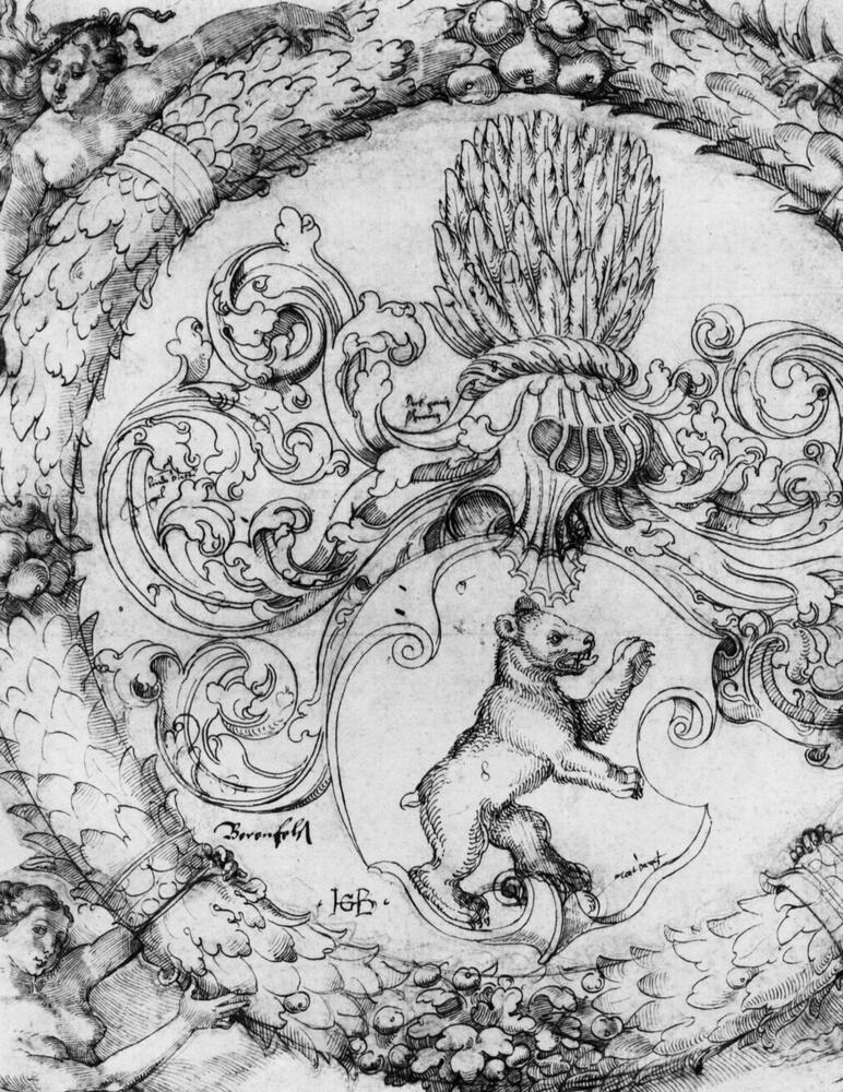 Ti offriamo una riproduzione artigianale su tela dell'opera famosa 'Stemma Basler Adelberg III di Roccia dell'Orso, Signore Arisdorf' di Hans Baldung, dal Museo delle Riproduzioni.