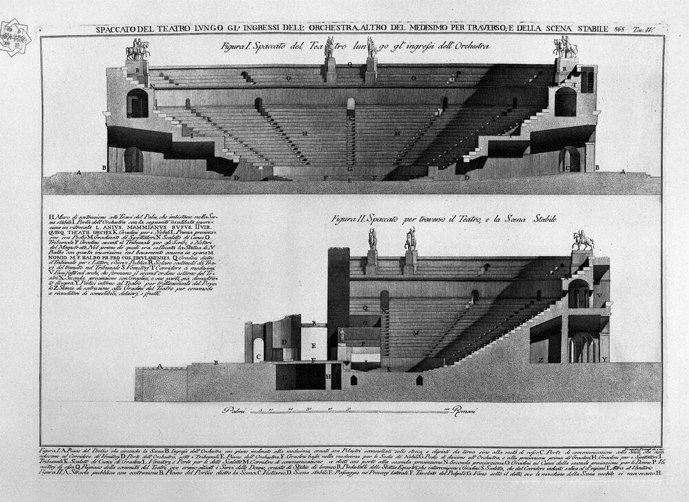 Ti offriamo una riproduzione artigianale su tela dell'opera famosa 'Teatro Spaccato lungo ingressi gl `di` Più dello stesso orchestr' di Giovanni Battista Piranesi, dal Museo delle Riproduzioni.