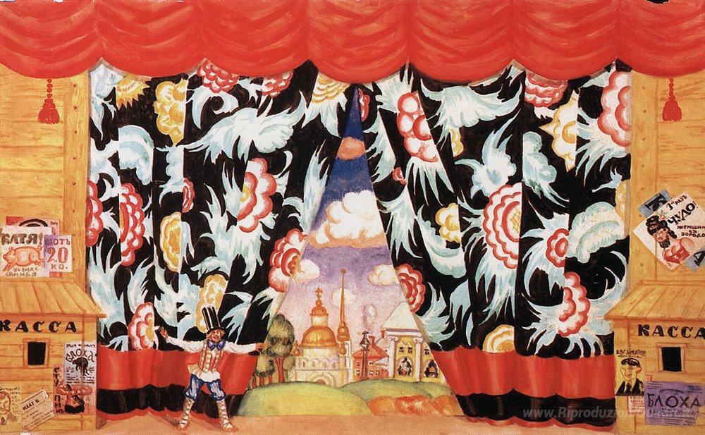 Ti offriamo una riproduzione artigianale su tela dell'opera famosa 'Tenda' di Boris Kustodiev, dal Museo delle Riproduzioni.