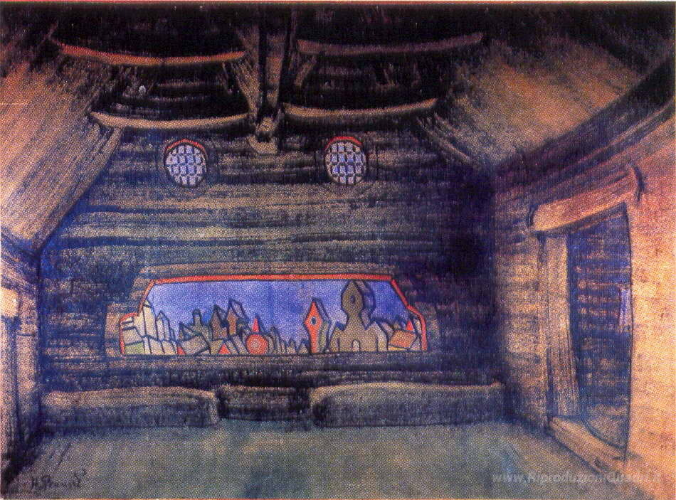 Ti offriamo una riproduzione artigianale su tela dell'opera famosa 'Terem di Yaroslavna. Nuova luna.' di Nicholas Roerich, dal Museo delle Riproduzioni.