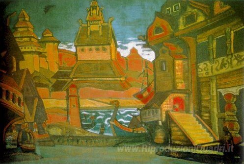 Ti offriamo una riproduzione artigianale su tela dell'opera famosa 'Tmutarakan' di Nicholas Roerich, dal Museo delle Riproduzioni.