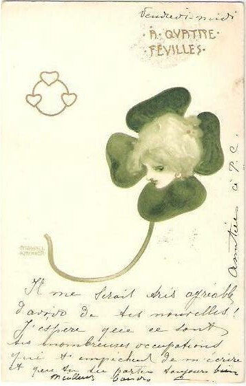 Ti offriamo una riproduzione artigianale su tela dell'opera famosa 'Trifogli' di Raphael Kirchner, dal Museo delle Riproduzioni.