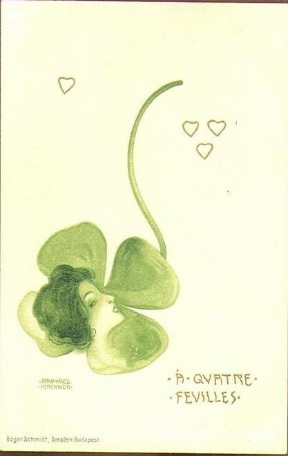 Ti offriamo una riproduzione artigianale su tela dell'opera famosa 'Trifogli' di Raphael Kirchner, dal Museo delle Riproduzioni.