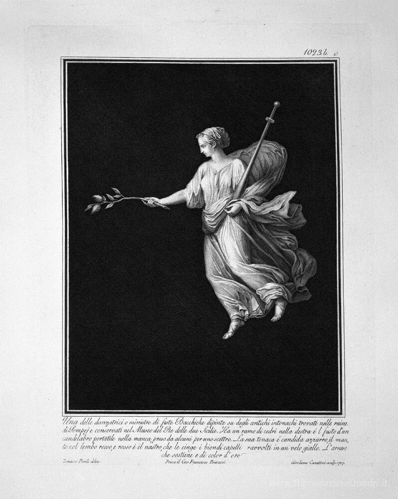 Ti offriamo una riproduzione artigianale su tela dell'opera famosa 'Un altro ballerino, tratto da un dipinto di Pompei' di Giovanni Battista Piranesi, dal Museo delle Riproduzioni.