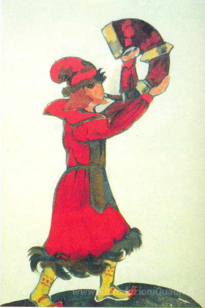 Ti offriamo una riproduzione artigianale su tela dell'opera famosa 'Un ragazzo con il corno' di Nicholas Roerich, dal Museo delle Riproduzioni.