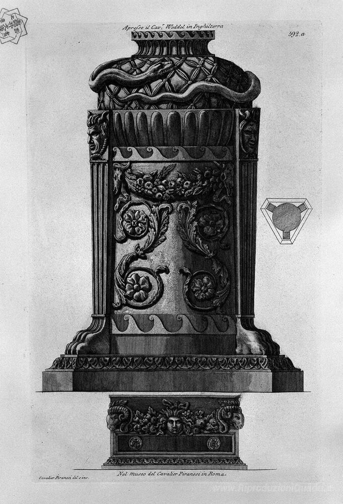 Ti offriamo una riproduzione artigianale su tela dell'opera famosa 'Un treppiede e un ex' di Giovanni Battista Piranesi, dal Museo delle Riproduzioni.