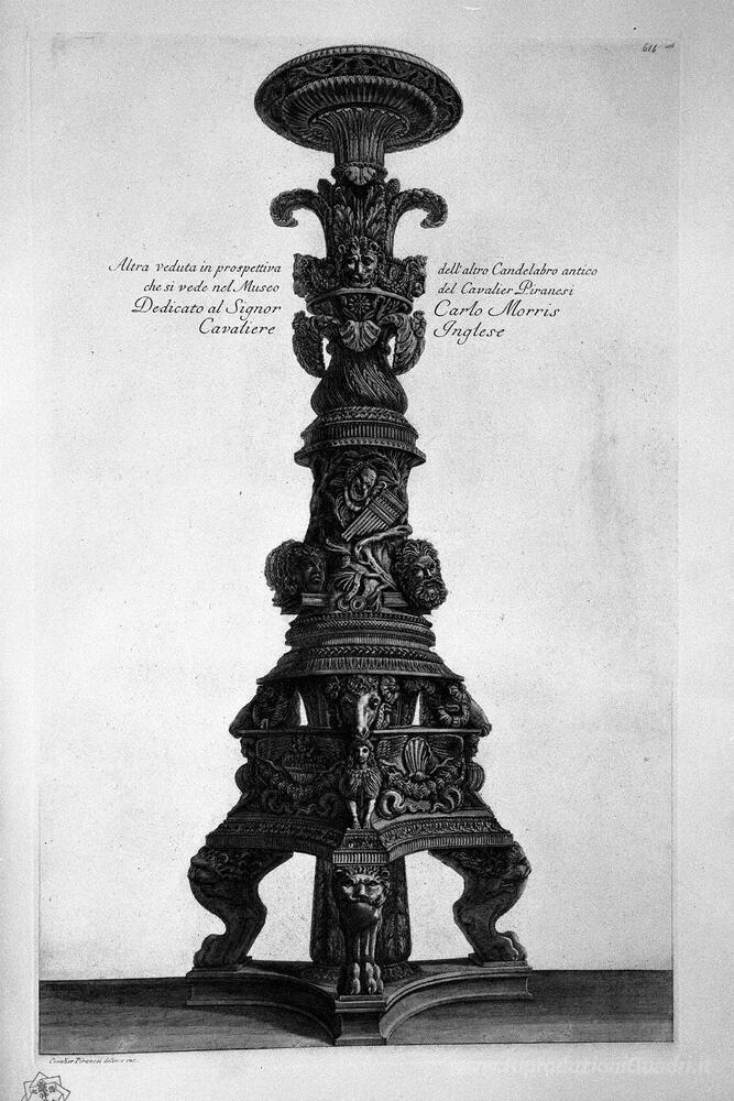 Ti offriamo una riproduzione artigianale su tela dell'opera famosa 'Un'altra vista in prospettiva della candela precedente' di Giovanni Battista Piranesi, dal Museo delle Riproduzioni.