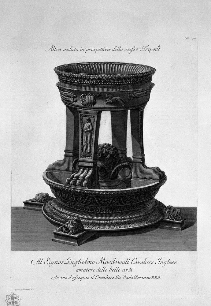 Ti offriamo una riproduzione artigianale su tela dell'opera famosa 'Un'altra vista in prospettiva dello stesso Tripod' di Giovanni Battista Piranesi, dal Museo delle Riproduzioni.