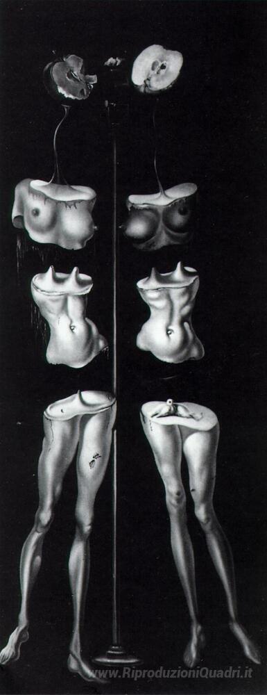 Ti offriamo una riproduzione artigianale su tela dell'opera famosa 'Untitled - Scenografia (figure Tagliare a tre)' di Salvador Dali, dal Museo delle Riproduzioni.