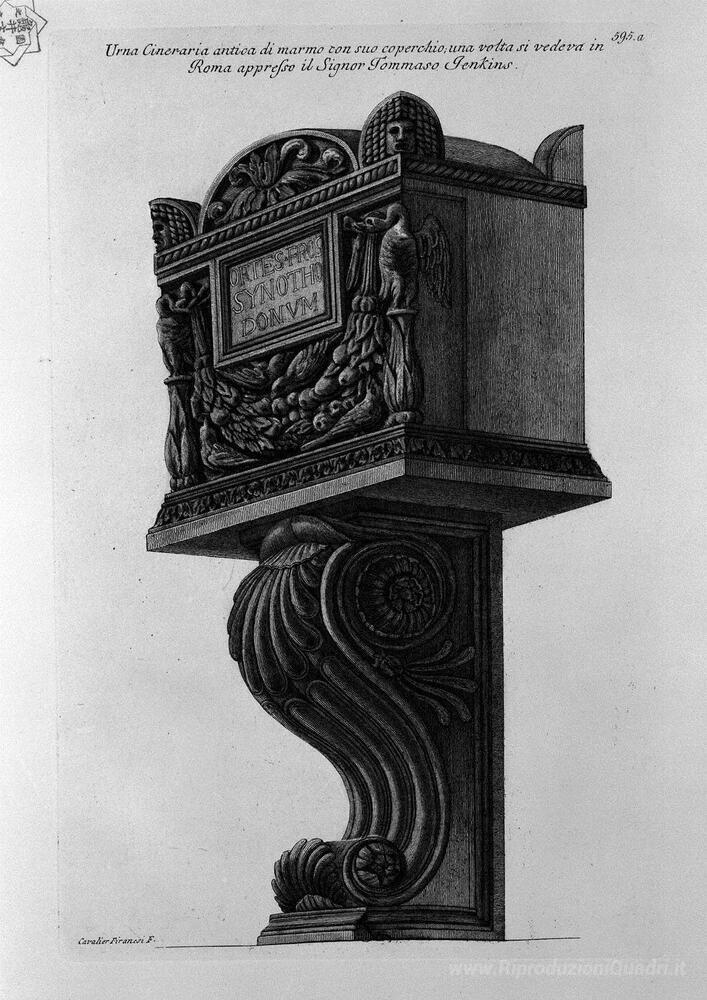 Ti offriamo una riproduzione artigianale su tela dell'opera famosa 'Urna di marmo con il suo coperchio' di Giovanni Battista Piranesi, dal Museo delle Riproduzioni.