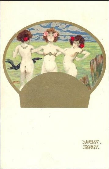 Ti offriamo una riproduzione artigianale su tela dell'opera famosa 'Vecchi tempi' di Raphael Kirchner, dal Museo delle Riproduzioni.