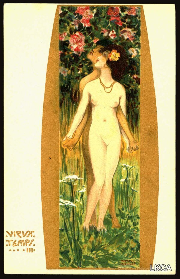 Ti offriamo una riproduzione artigianale su tela dell'opera famosa 'Vecchi tempi' di Raphael Kirchner, dal Museo delle Riproduzioni.