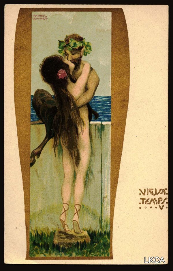 Ti offriamo una riproduzione artigianale su tela dell'opera famosa 'Vecchi tempi' di Raphael Kirchner, dal Museo delle Riproduzioni.