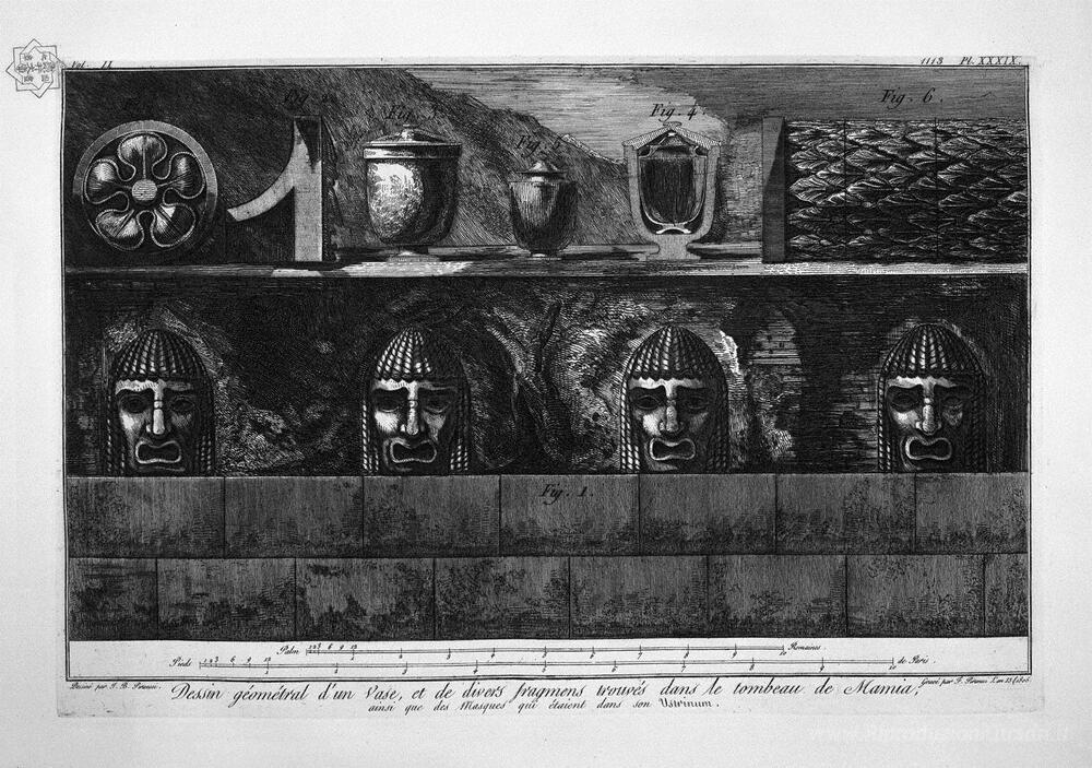 Ti offriamo una riproduzione artigianale su tela dell'opera famosa 'Veduta del sepolcro e ha detto le due contigue' di Giovanni Battista Piranesi, dal Museo delle Riproduzioni.