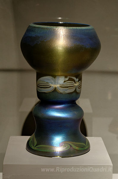 Ti offriamo una riproduzione artigianale su tela dell'opera famosa 'Vetro decorativo a forma di calice' di Louis Comfort Tiffany, dal Museo delle Riproduzioni.