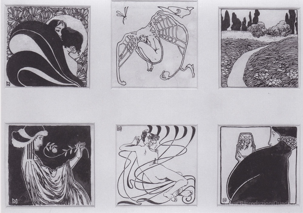 Ti offriamo una riproduzione artigianale su tela dell'opera famosa 'Vignette per il catalogo Secessionausstellung 1898' di Koloman Moser, dal Museo delle Riproduzioni.