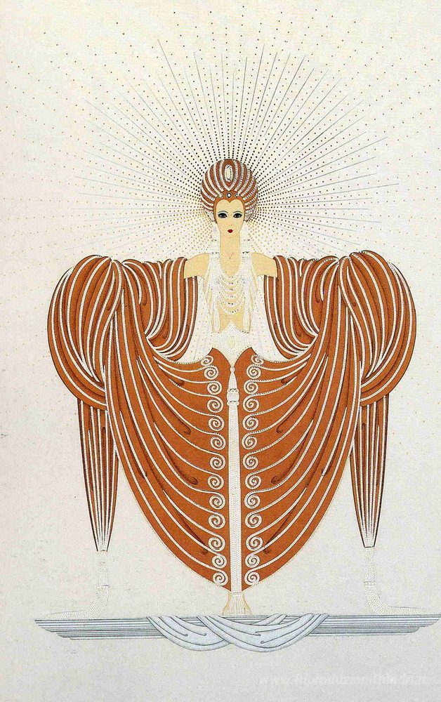 Ti offriamo una riproduzione artigianale su tela dell'opera famosa 'Virtù celesti' di Erte, dal Museo delle Riproduzioni.