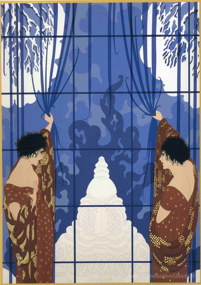 Ti offriamo una riproduzione artigianale su tela dell'opera famosa 'Winter Arrivo' di Erte, dal Museo delle Riproduzioni.