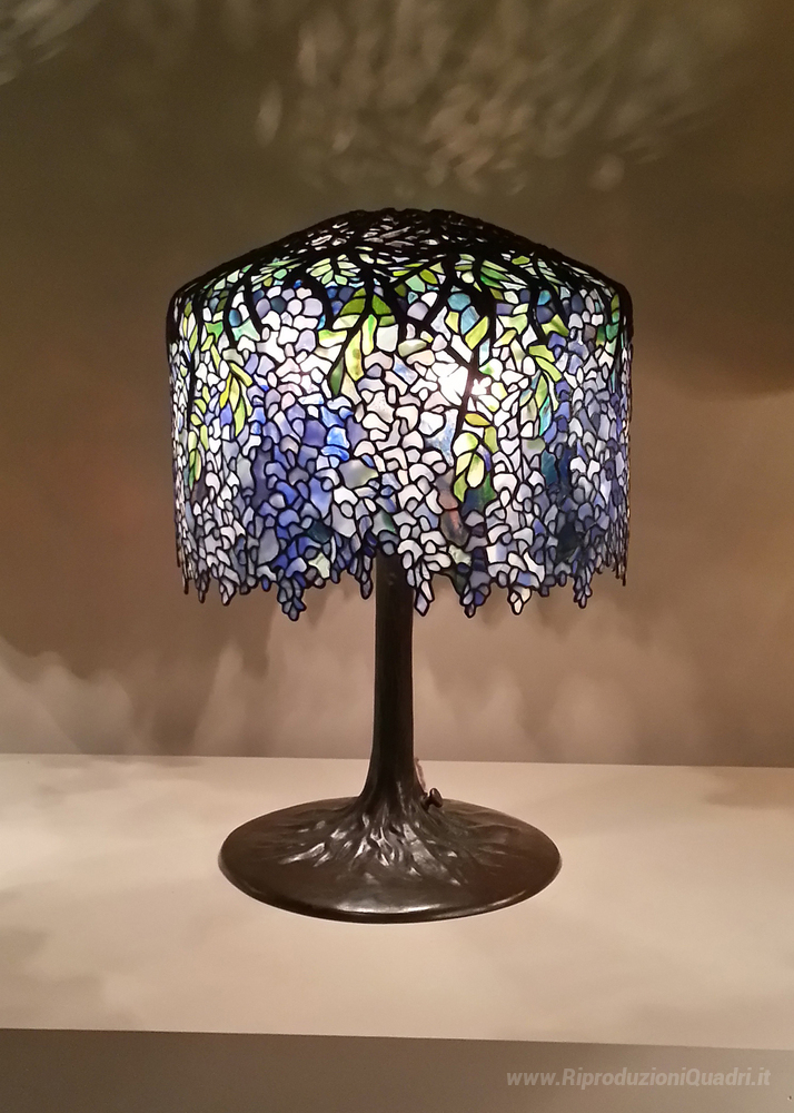 Ti offriamo una riproduzione artigianale su tela dell'opera famosa 'Wisteria Lampada da tavolo' di Louis Comfort Tiffany, dal Museo delle Riproduzioni.