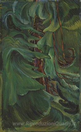 Emily Carr è una delle figure più influenti dell’arte canadese, famosa per i suoi dipinti che catturano l’essenza della natura e la cultura indigena. Le sue opere, permeate da una forte connessione con il paesaggio, riflettono il vibrante spirito dei boschi e della costa pacifica. Carr utilizzava tecniche di pittura ad olio che univano impressionismo e modernismo, creando atmosfere uniche attraverso l’uso di colori audaci e forme suggestive.